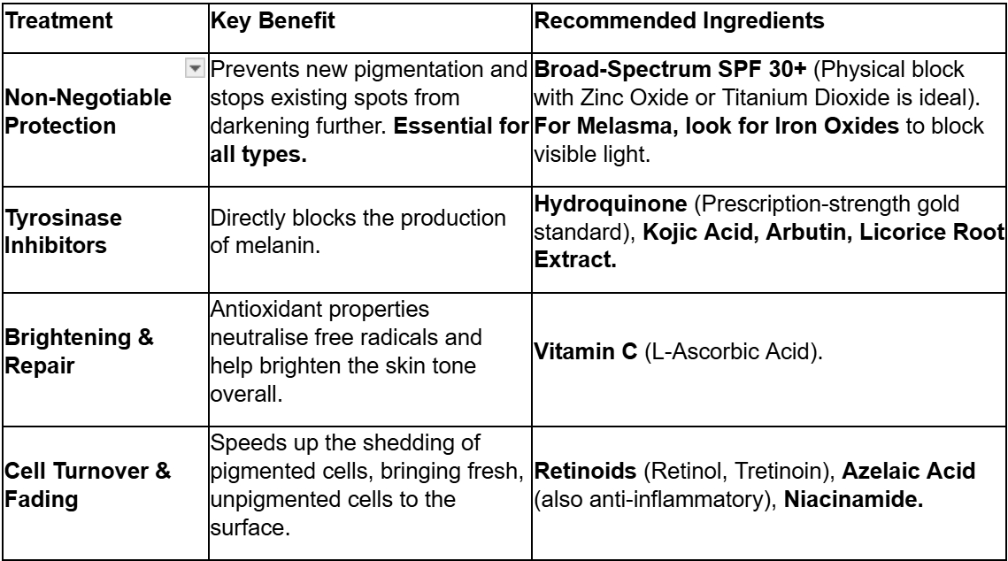 Successful treatment of pigmentation requires a committed, multi-step approach: meticulous sun protection, topical ingredients to inhibit melanin production, and professional treatments to lift existing pigment.