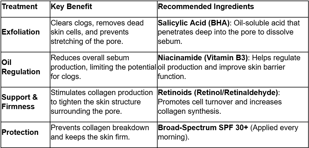 To achieve the best results, we recommend a combined approach: consistent use of targeted active skincare ingredients (like Salicylic Acid and Retinoids) alongside a customised course of in-clinic treatments (such as laser treatment) for deeper rejuvenation and lasting pore refinement.